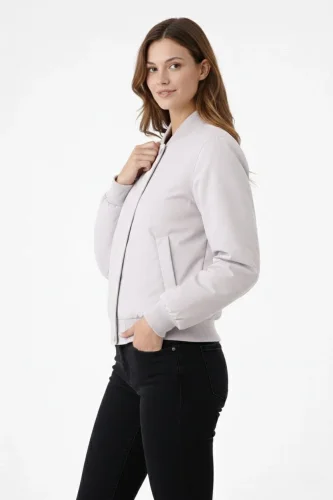 • Premium Bomber Ceket Çıtçıt Kapamalı Ribana Manşetli Astarlı Regular Fit Mont Beyaz