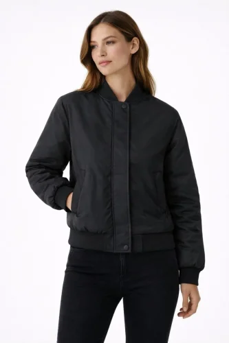 Premium Bomber Ceket Çıtçıt Kapamalı Ribana Manşetli Astarlı Regular Fit Mont Siyah