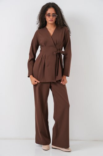 • Kimono Pantolon Kumaş Takım 30054 Kahverengi