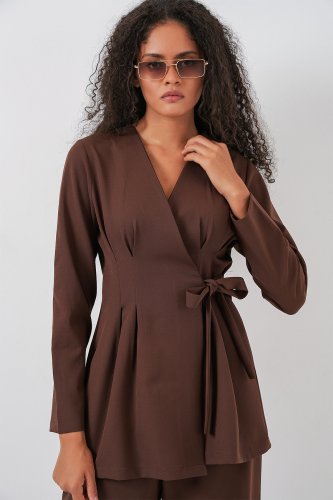 Kimono Pantolon Kumaş Takım 30054 Kahverengi