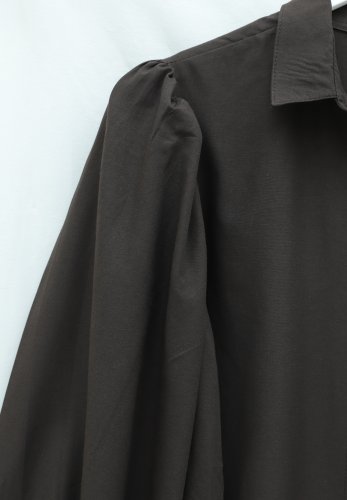 • Balon Kol Düğmeli Kısa Poplin Gömlek K Kahve