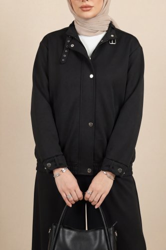 • Yakası ve Kol Manşeti Kemerli Ceketli Pileli Bol Paça Pantolonlu Okyanus Takım Siyah