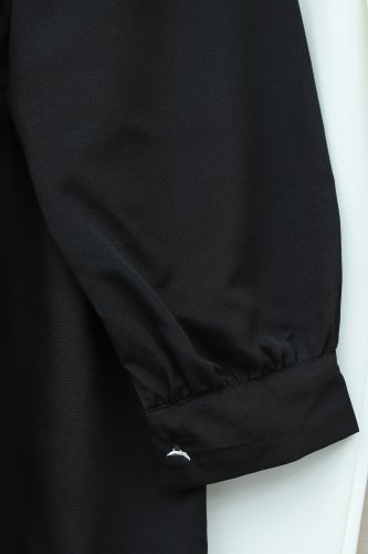 V Yaka Bağlamalı Yakası Fırfırlı Çiçek Nakışlı Poplin Tunik Siyah